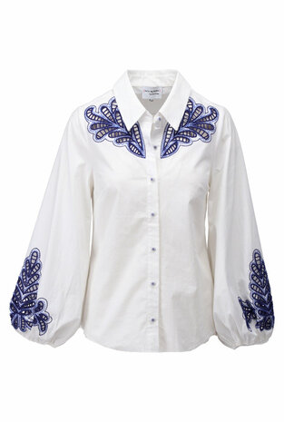 K-Design bloes met borduursel indigo SS26