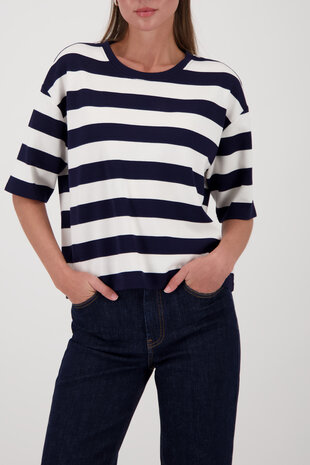 Monari sweatshirt ronde nek marine gestreept SS26