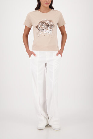Monari t-shirt Leo + diamanten ronde nek zand SS26